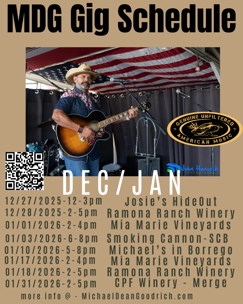 Click the link below and you’ll get to to see all the Digital Outlets that my music is available on. Or go directly to one of those sites and search for me, Michael Dean Goodrich